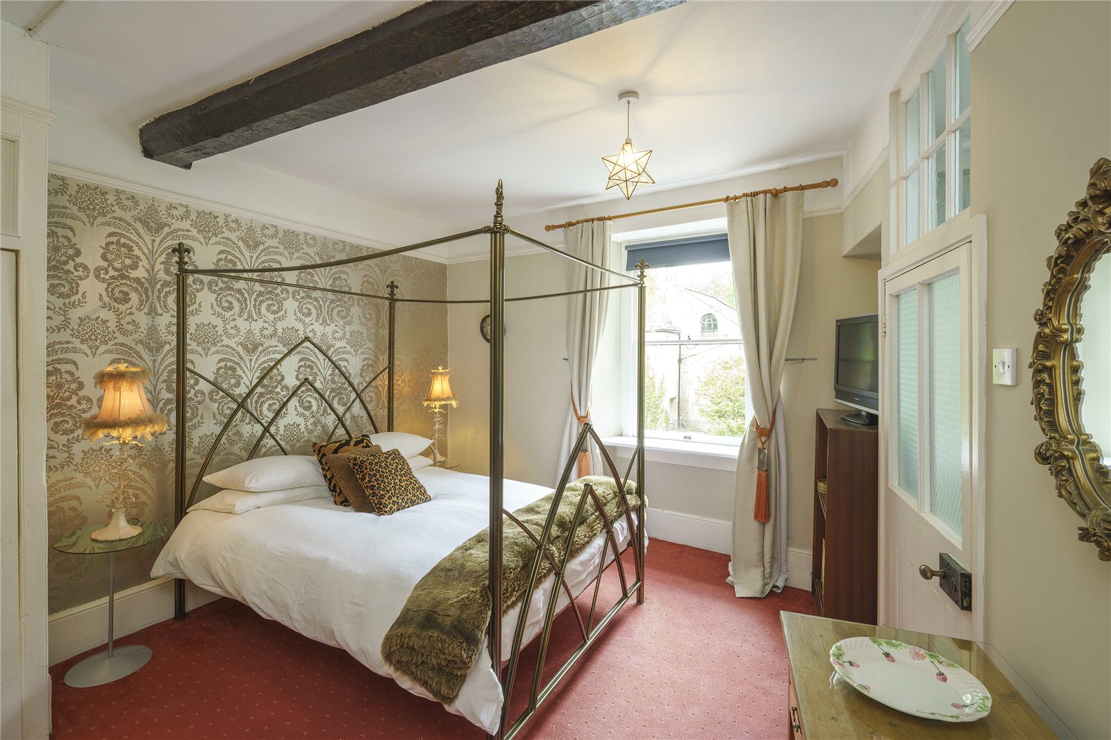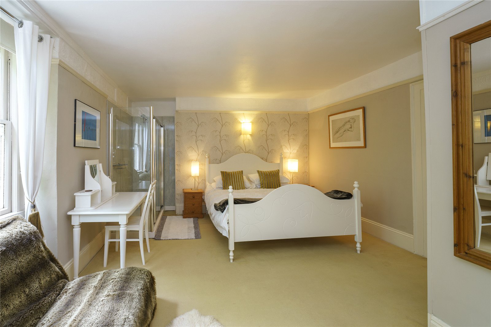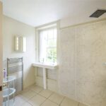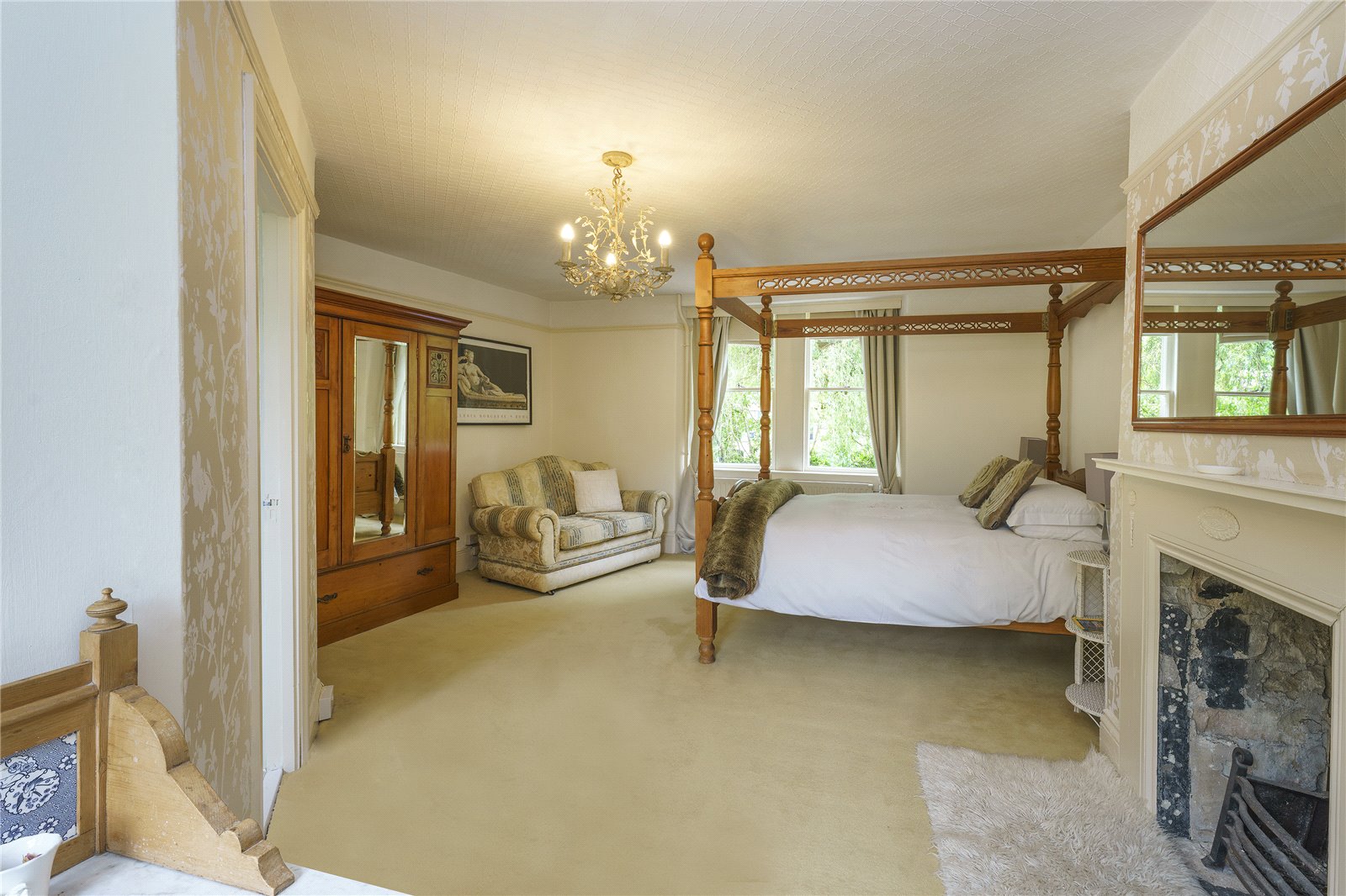 “Upstairs you will find six further bedrooms, all en suite. Two spacious bedrooms are on the first floor. Both the bedrooms easily accommodate king-sized beds, both have original stone fireplaces, one a wet room with waterfall shower, and ‘ his and hers’ basins overlooking the back garden, the other a double shower, WC and basin.”