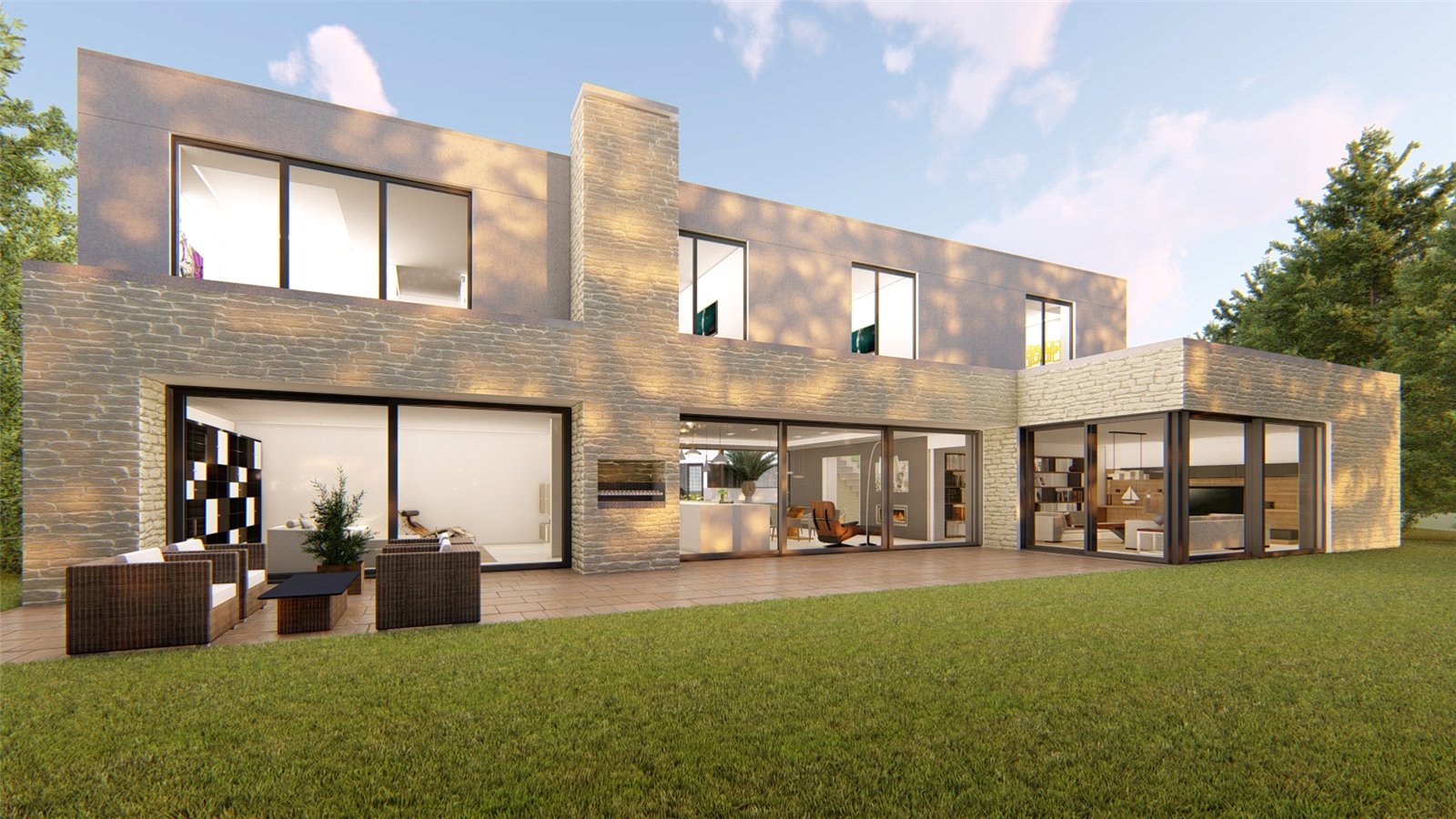 August completion. A four bedroom (all en suite) contemporary detached house, 345 sq m, 3664 sq ft, built of Bath stone and designed by award-winning Stonewood Design who have worked at the Newt, Somerset and Peter Gabriel’s studios.