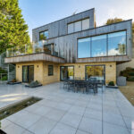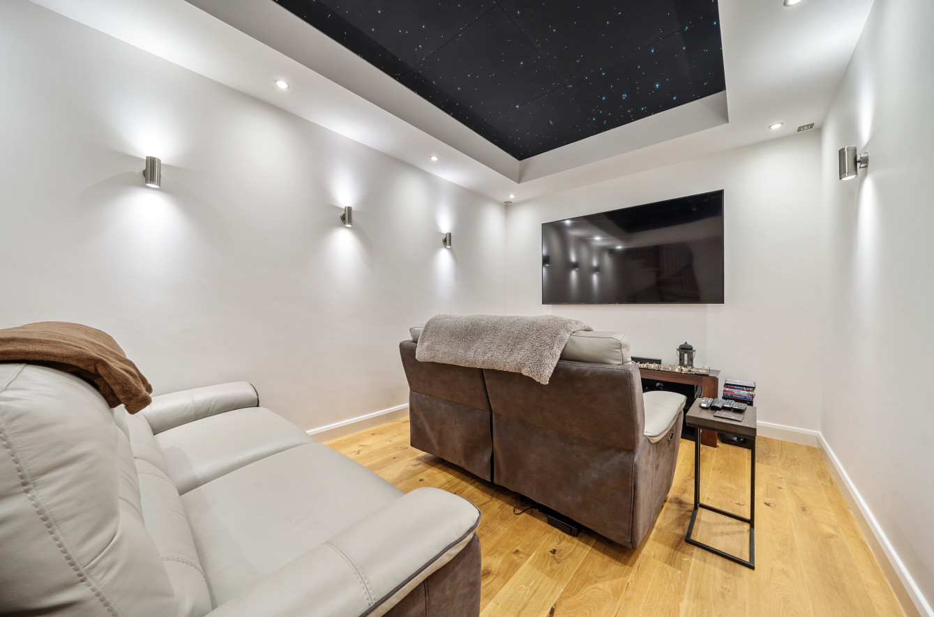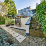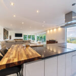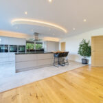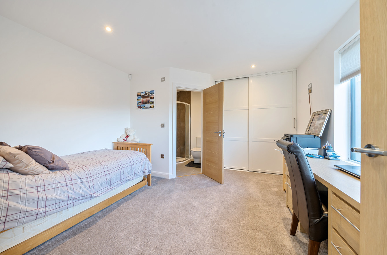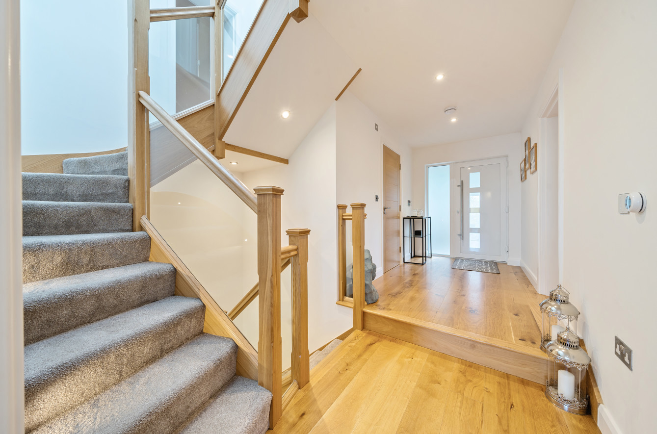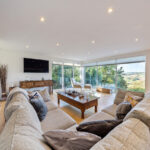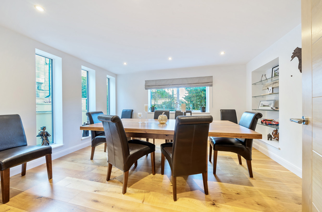 Bespoke built by the current owners, this unique modern detached home with breath-taking valley views is nestled into the hillside on the Kingsdown slopes between Bath and Corsham. Positioned on an elevated site, it spans three pod-like floors and features five bedrooms, four of which are en suite, distributed across the lower and upper levels. The top floor boasts a luxurious suite complete with a jacuzzi bath and a dressing room. Accessible via a private drive that comfortably accommodates four cars, it includes a single garage and is surrounded by contemporary terraced gardens with lawns, water features, and patio areas. 'The house looks directly across the valley and over to Bath on the left – the views were a major attraction for us when choosing the plot,' explain the owners. They further add, 'when we bought the land, our vision was to build a modern home that truly embraced the wonderful surroundings.' Designed for comfort and flooded with natural light, Pen Bryn is an exceptional home where one can enjoy a quiet country life without feeling too isolated. 'The rural village location has provided us with peace and tranquillity while still being close enough to Bath – a city we love – to enjoy its exceptional amenities and attractions, from great restaurants to excellent schools.' Featuring open-plan living areas and bi-fold doors that lead to a stunning balcony overlooking the garden and the valley beyond, the house is wonderfully designed for entertaining. 'This primary living area includes the kitchen and a seating area where everyone comes together – it’s ideal for both winter and summer entertaining.'