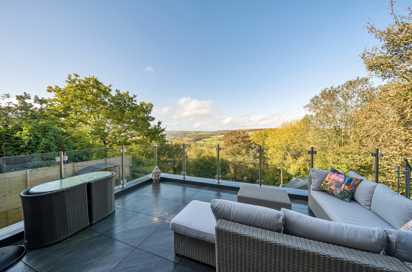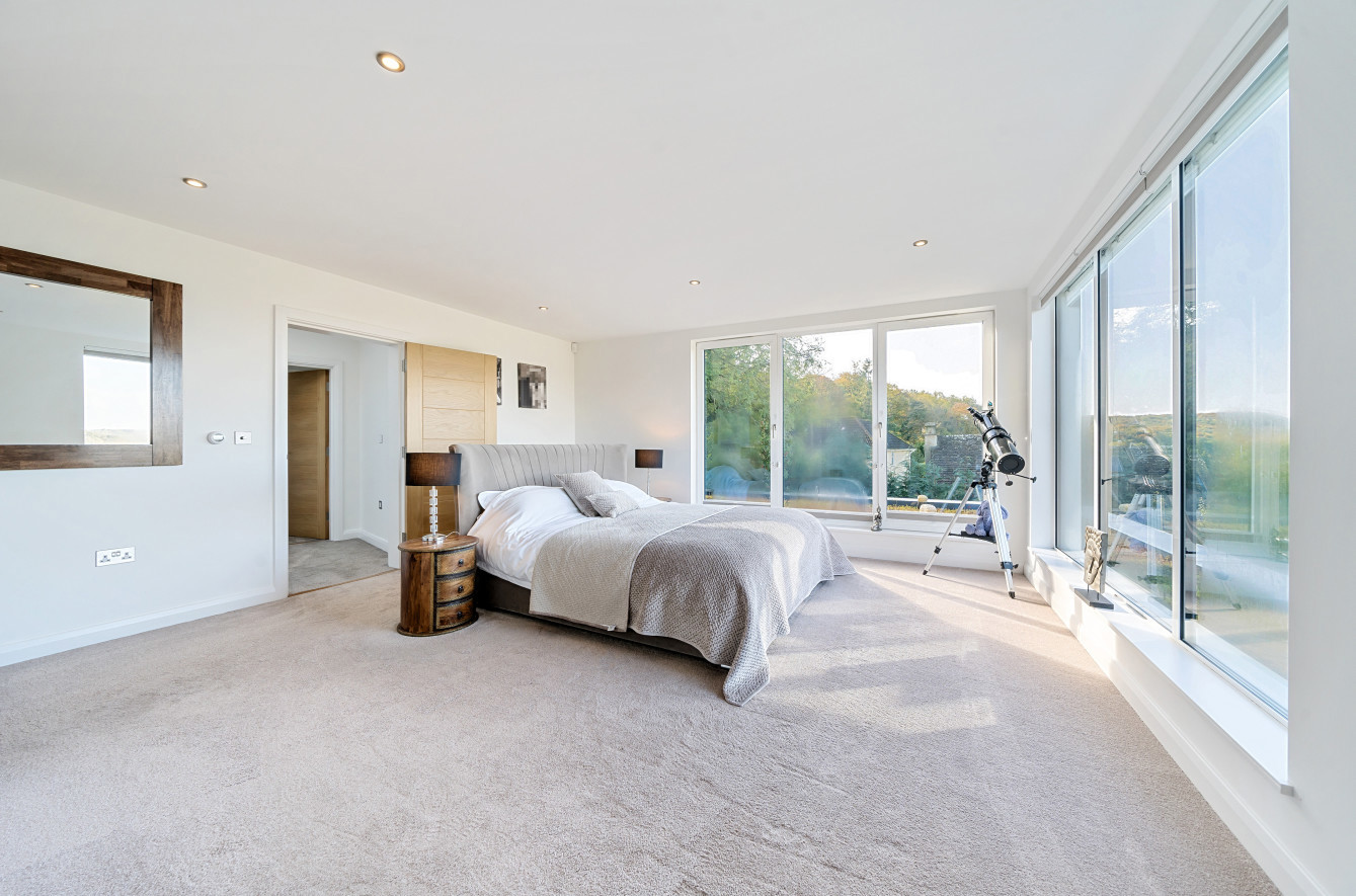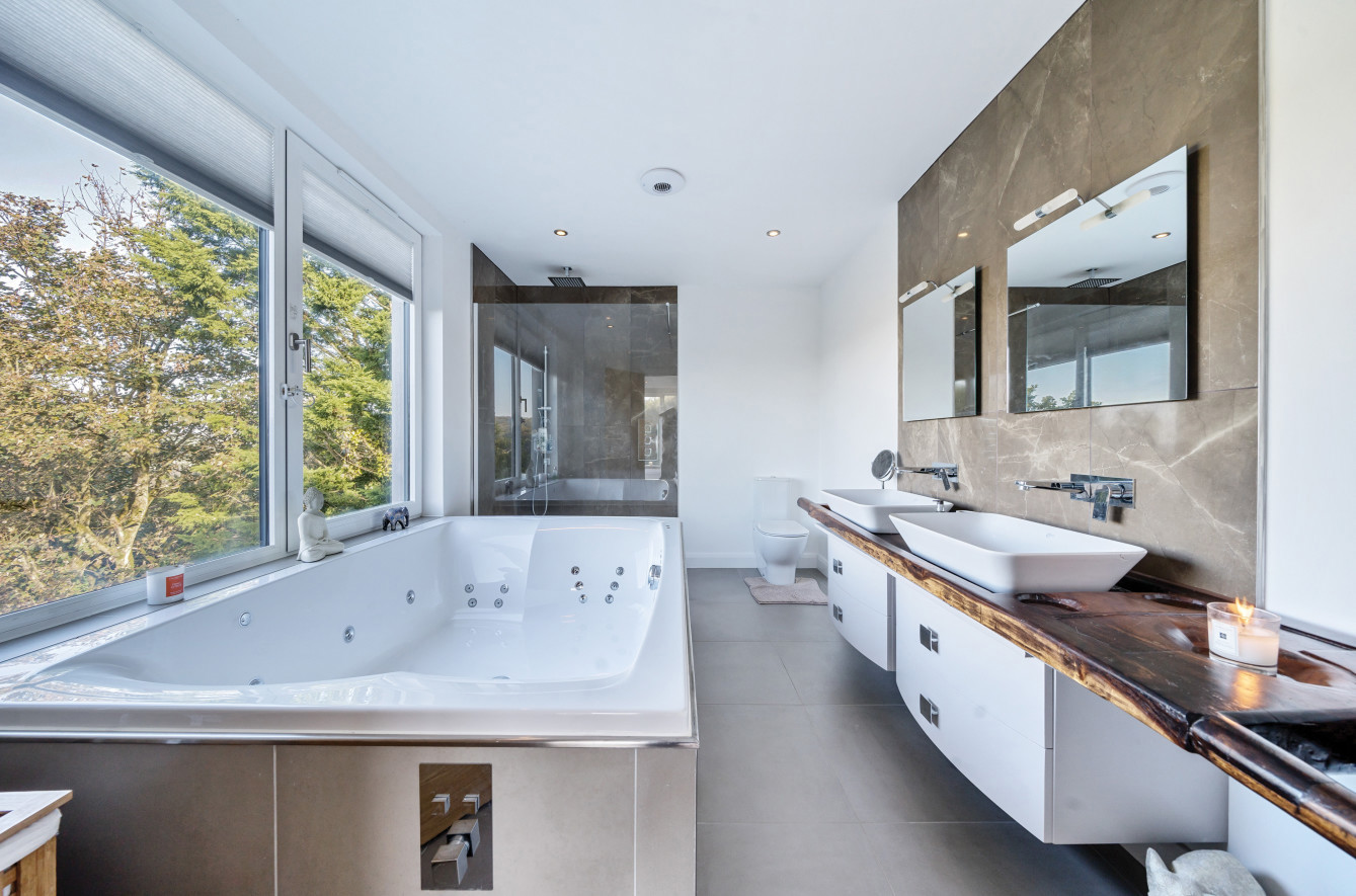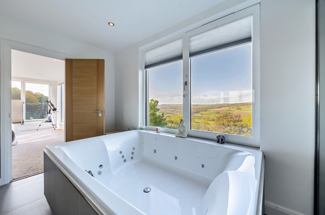 'The large Jacuzzi bath in the master en-suite is the perfect place to relax and look out across the valley.'